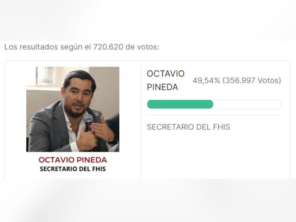 TEGUCIGALPA, HONDURAS.-En una encuesta realizada por Diario El Heraldo durante 20 días, los lectores eligieron a Octavio Pineda como el “Mejor funcionario de Honduras en 2023”. La votación, que cerró la madrugada del 6 de enero, le dejó a Pineda un respaldo de 356,997 votos, equivalente al 49.54% de las participaciones.