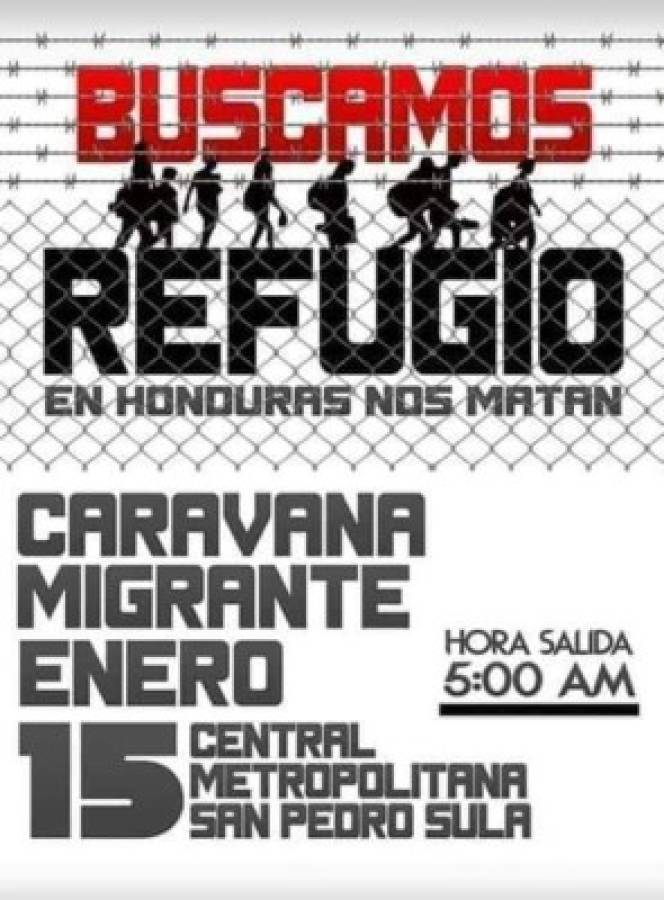 'Buscamos refugio, en Honduras nos matan', dice el afiche. 'Caravana migrante, enero 15. Hora de salida 5:00 AM', continúa.