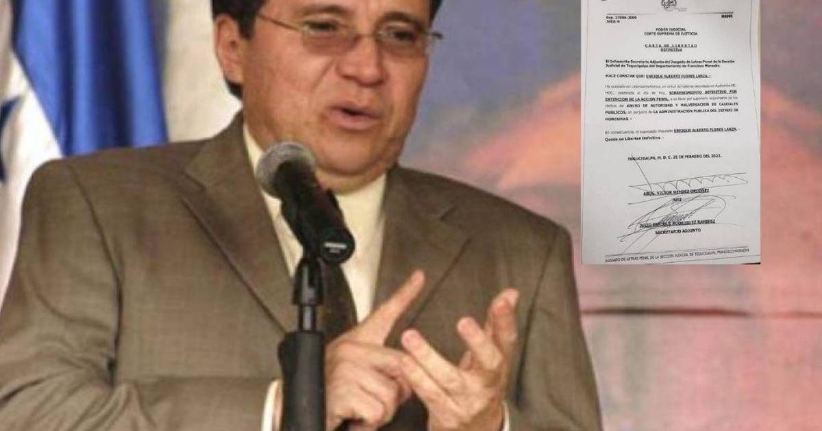 “Enrique Alberto Flores Lanza ha quedado en libertad definitiva, en virtud de haberse decretado en audiencia ADHOC, celebrada el día de hoy, sobreseimiento definitivo por extinción de la acción penal, a su favor por suponerlo responsable de los delitos de abuso de autoridad y malversación de caudales públicos, en perjuicio de la administración pública del estado de Honduras”, sentenció la Corte Suprema de Justicia.