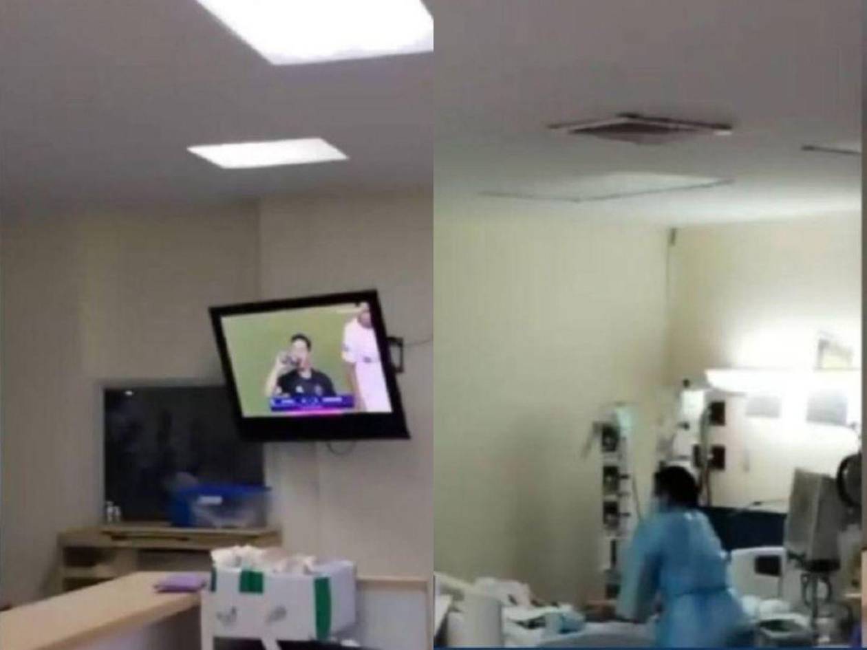 En el video, además de varias camillas, se enfoca un televisor que transmitía el partido entre Inter de Miami y Olimpia, con Lionel Messi en la cancha.