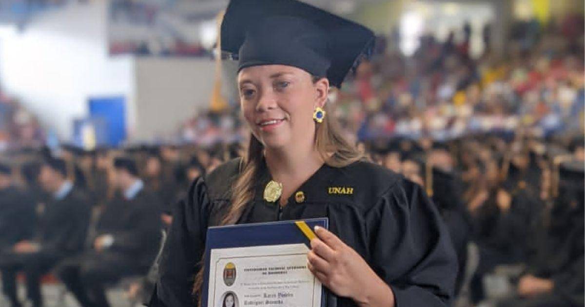 Karen Rodríguez es la primera graduada de la Universidad Nacional Autónoma de Honduras (UNAH) en recibir un título en código Braille, un sistema de lectura y escritura utilizado por las personas no videntes.