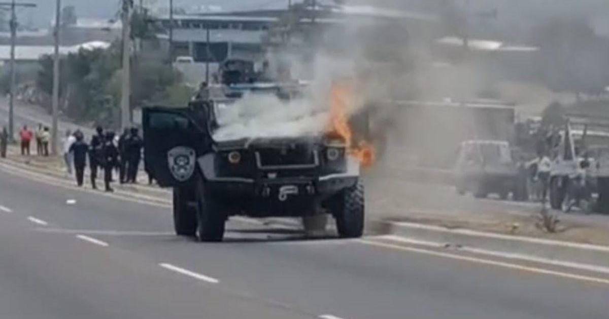 TEGUCIGALPA, HONDURAS.- Un vehículo blindado, valorado entre 10 y 13 millones de lempiras, conocido como Black Mamba, quedó reducido a chatarra después de incendiarse en la carretera CA-5, a inmediaciones de Támara.