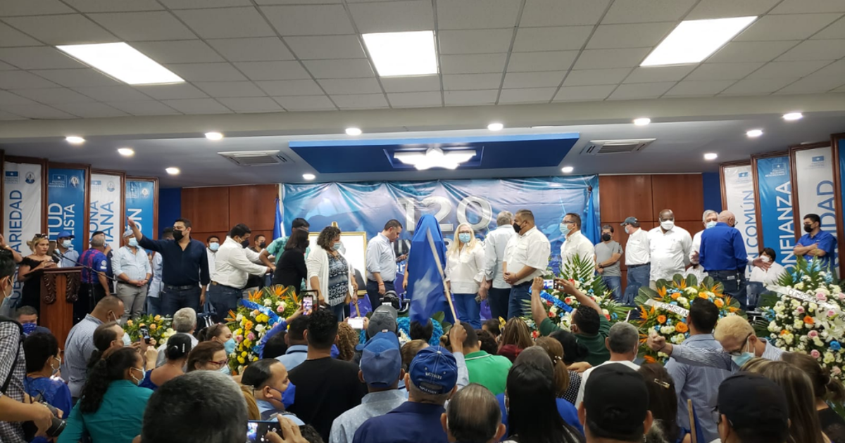 TEGUCIGALPA, HONDURAS.-El Partido Nacional de Honduras celebra este 27 de febrero su 120 aniversario de fundación con una pequeña reunión que fue dirigida por el presidente del ente político, David Chávez.