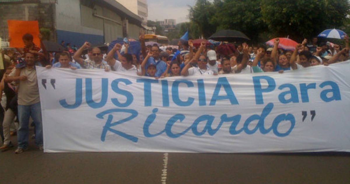 Con una pancarta que reza 'Justicia para Ricardo', los manifestantes se dirigieron hacia el Tribunal Supremo Electoral (TSE) para demandar que se analice la inscripción del otrora aspirante presidencial, quien fue derrotado en las elecciones primarias por el presidente del Congreso Nacional Juan Orlando Hernández.