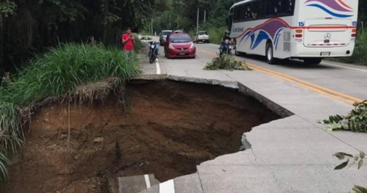 Debido a las fuertes lluvias que se han registrado en los últimos días, hubo saturación en el terreno y se hundió parte de la carretera y solo funciona uno de los carriles.