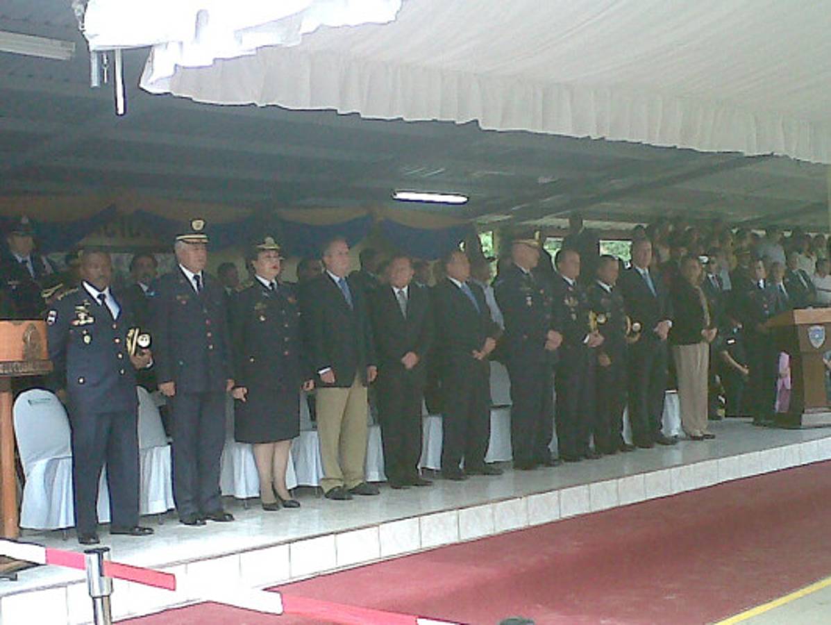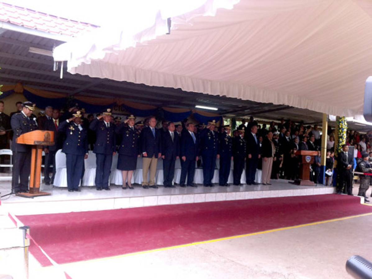 Lobo encabezó la ceremonia de ascensos de la Policía Nacional que se realizó en la sede del Comando de Operaciones Especiales (Cobras), acompañado del alcalde de Tegucigalpa, Ricardo Álvarez.