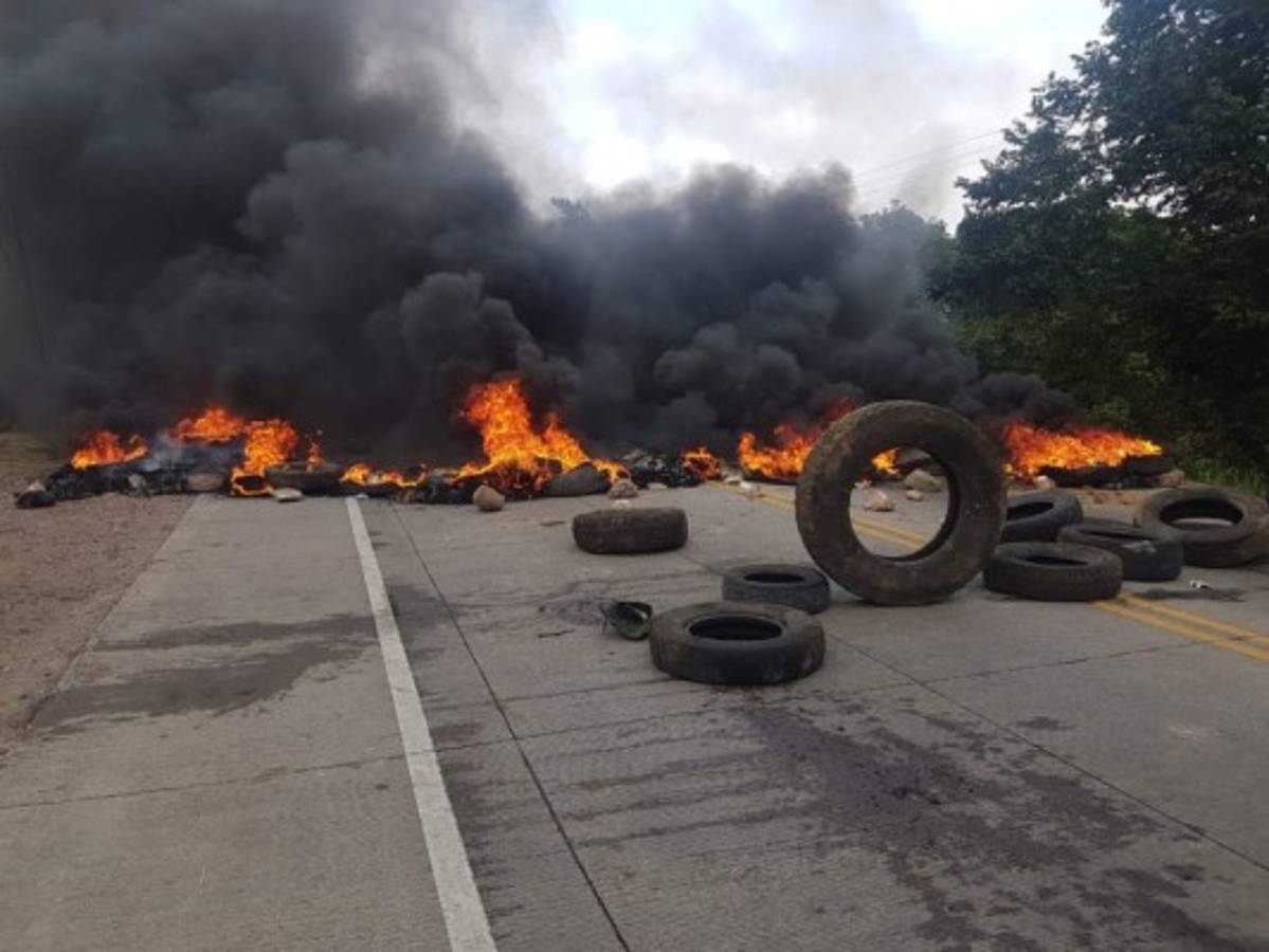 La salida al sur de la capital hondureña, a la altura de la colonia Germania y El Manantial, amaneció completamente bloqueada la mañana de este jueves.