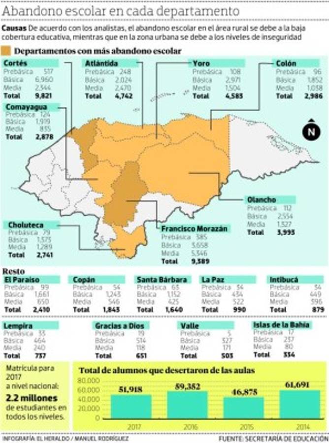 “Es positivo que haya una disminución en las cifras de deserción a nivel nacional, pero cuando se hacen los desagregados seguimos viendo cifras elevadas y en el caso de Tegucigalpa, podría ser que tenga que ver con el tema de seguridad”, manifestó Euceda.