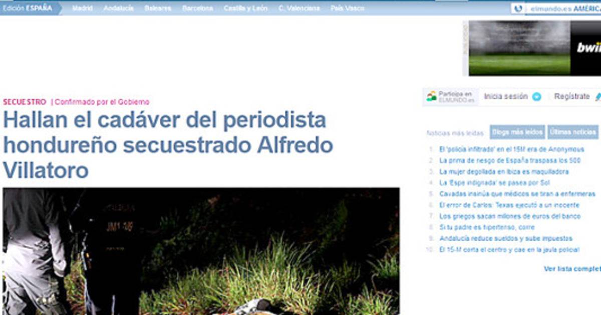 'Hallan el cadáver del periodista hondureño secuestrado Alfredo Villatoro', tituló elmundo.es de España.