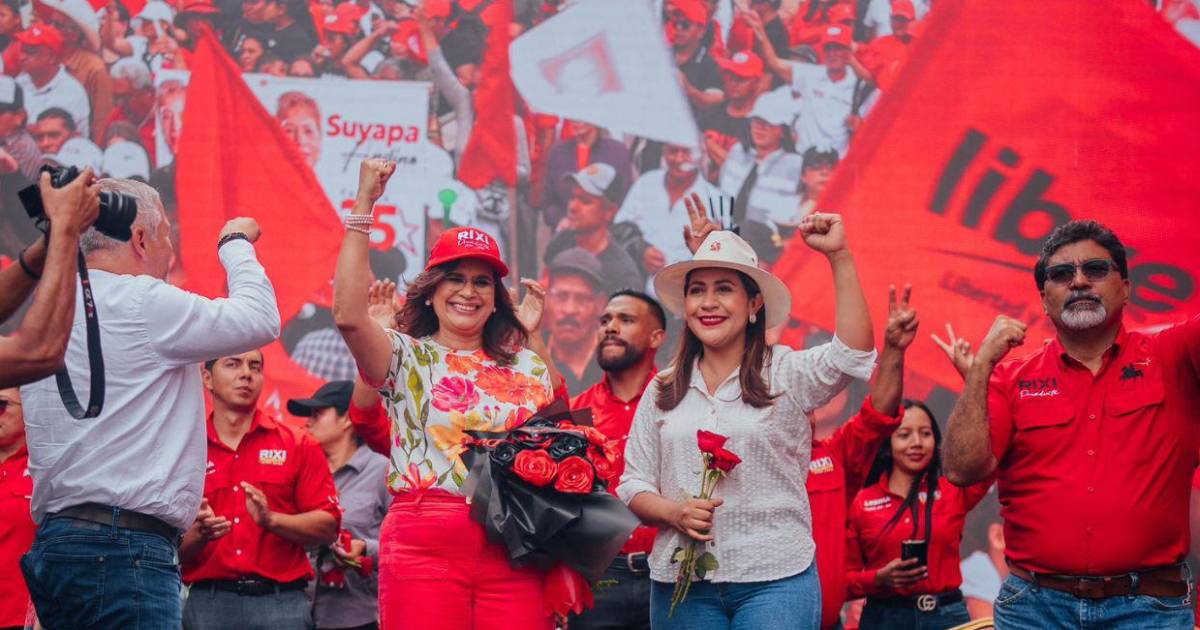 "Son los mismos de los 12 años, siete meses de la narco tiranía, fuera JOH y fuera Cossette", gritó la candidata de Libre.