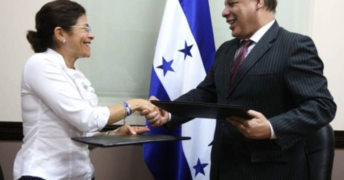 La firma se realizó entre la ingeniera Hilda Hernández, y el Dr. Marco Tulio Medina, de la Fundación Salvador Moncada, para el avance de la ciencia, en representación del presidente de Honduras Global.
