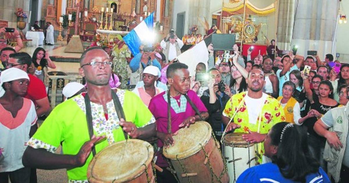 Al menos unos 500 hermanos de la comunidad garífuna vienen desde la costa norte del país a realizar una solemne misa a la Virgen de Suyapa. La celebración se realiza al ritmo de instrumentos de percusión y danzas