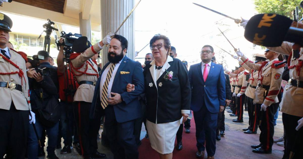 TEGUCIGALPA, HONDURAS.- En medio de un pasillo formado por cadetes de la Policía Nacional en las afueras del Poder Legislativo, Luis Redondo, presidente de ese poder del Estado, recibió a la designada presidencial Doris Gutiérrez, quien presentará el informe del primer año de gobierno de la mandataria Xiomara Castro Sarmiento.