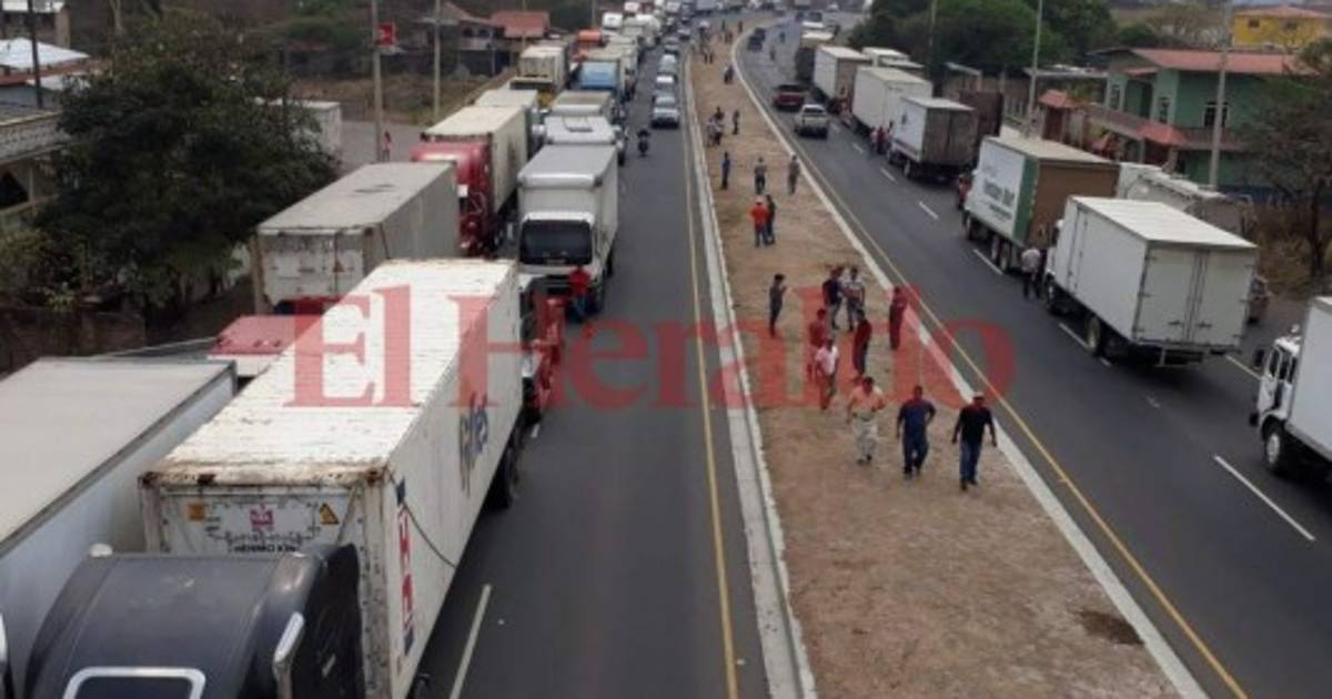 Transportistas de carga pesada protestan la mañana de este lunes por el aumento a los peajes que se ubican en la carretera CA-5, que desde Tegucigalpa conduce a San Pedro sula, zona norte de Honduras.