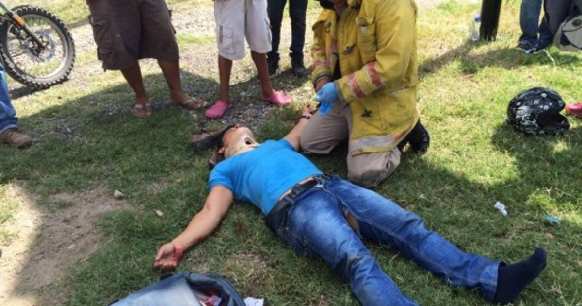 Elementos de rescate del Cuerpo de Bomberos brindaron asistencia al joven que resultó herido luego del accidente via. La víctima responde al nombre de Johny Roberto Romero Marcias, de 25 años de edad.