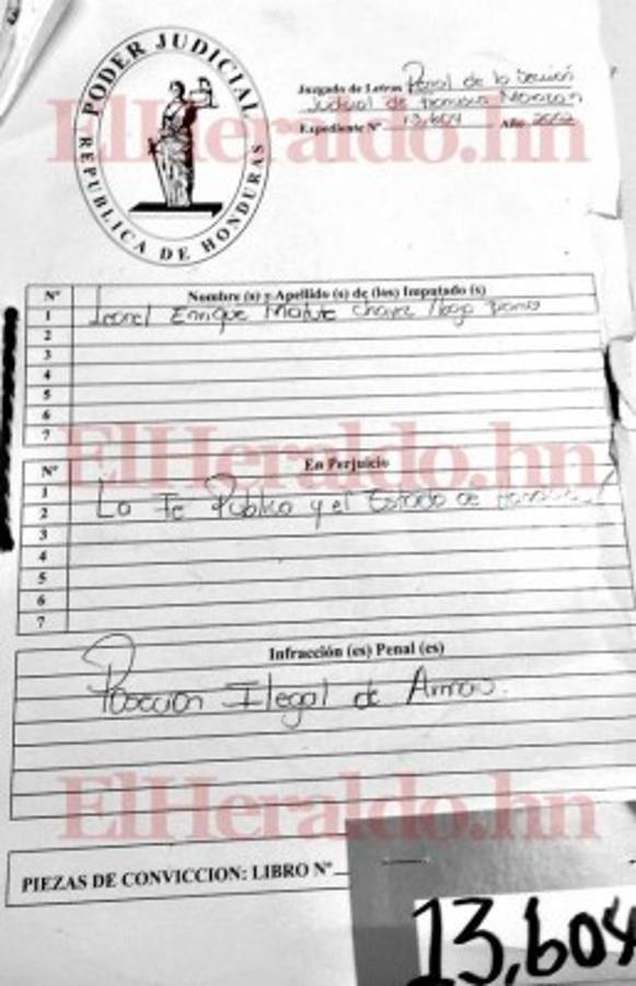 Este hecho también está registrado en el expediente judicial 13604-2002-J#1 C-V. En el consta que el inspector capturado declaró que hacía 15 días había sido asignado a Choluteca. Él fue acusado por el delito de transporte y portación ilegal de armas en perjuicio del Estado de Honduras.