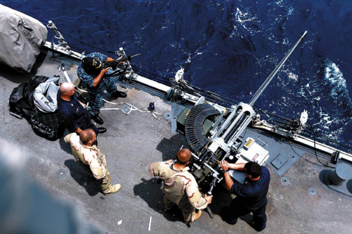 “Cuando estamos bajo ataque habrá entre 10 a 15 marineros en las estaciones de combate utilizando este tipo de armamento -metralletas- en la parte superior del barco con las metralletas”, explicó Long. El 80 por ciento de los marineros están capacitados para usar las restantes armas ligeras como los fusiles M15 o pistolas 9 milímetros.
