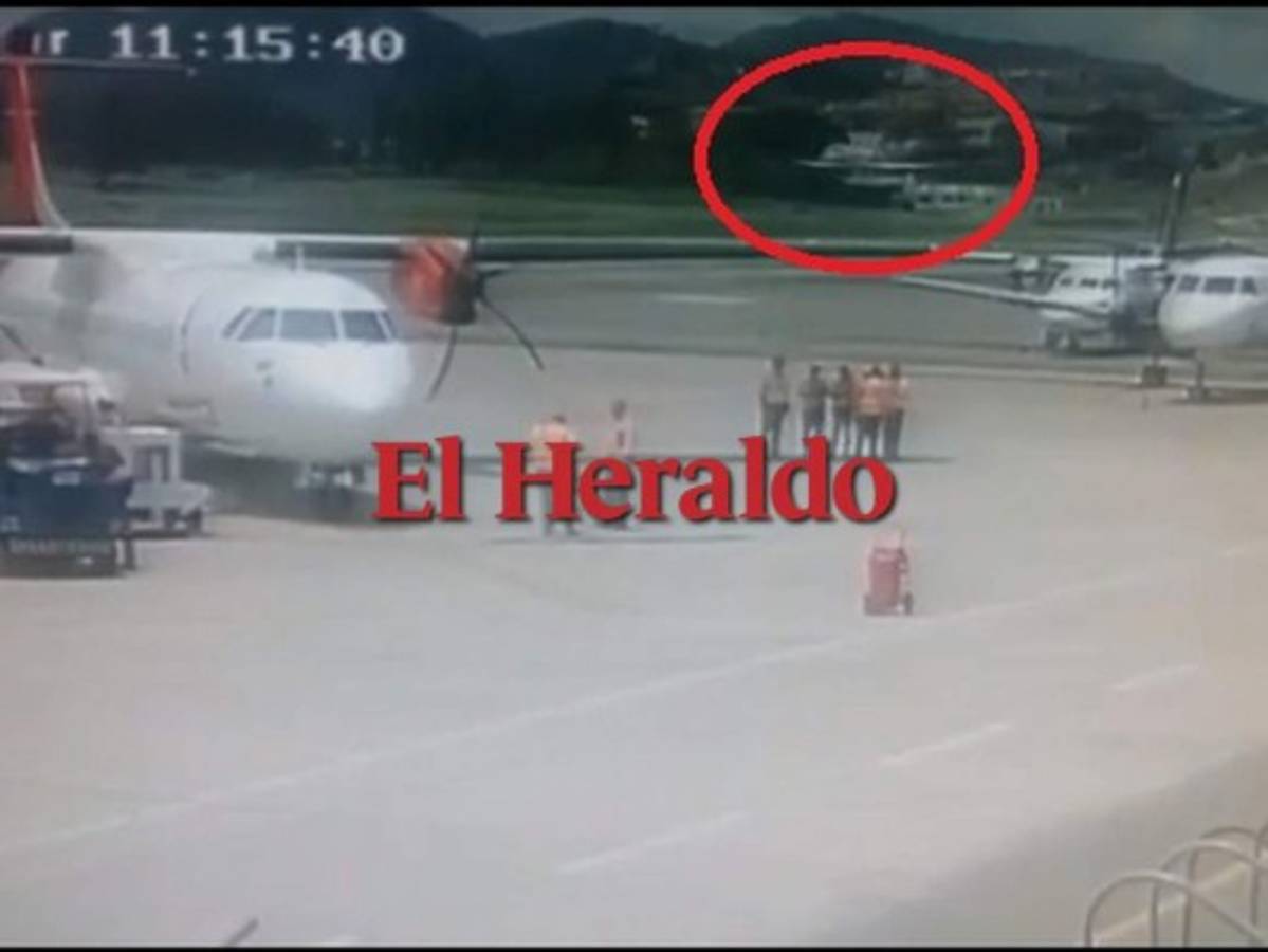 Una cámara de seguridad ubicada en el Aeropuerto Internacional Toncontín grabó el momento en el que la avioneta que se estrelló en la entrada de la colonia El Pedregal, toca la pista de aterrizaje.