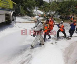 Miembros del Cuerpo de Bomberos de Honduras, rescatistas y otros equipos del Estado se movilizaron a la escena del accidente para brindarle ayuda a los afectados y remover los escombros de la calle.