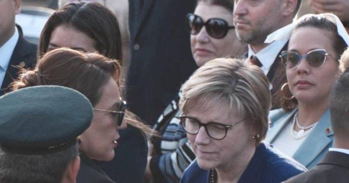 En un momento, Dogu acerca su oído a Xiomara para escucharla mejor y después se despidieron cordialmente.