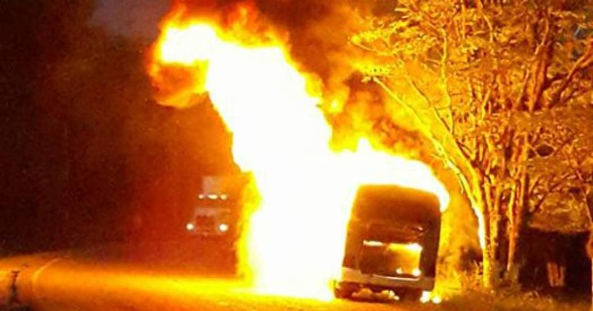 Un conductor grabó el instante cuando la unidad ardía en pavorosas llamas y la situación amenazaba en desbordar en un hecho más peligro, pero el acto fue controlado.