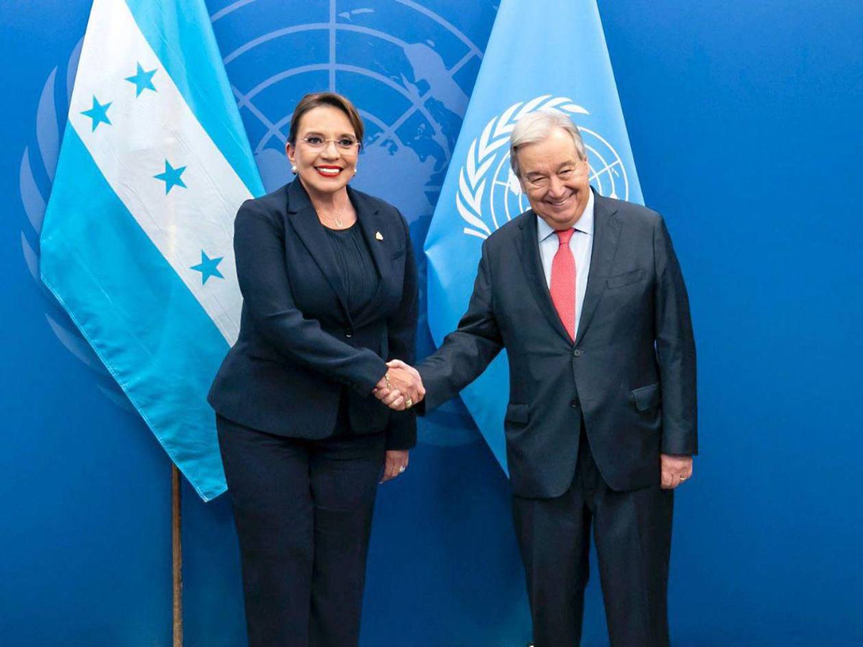 Nueva York, Estados Unidos.- La presidenta Xiomara Castro se reunió este martes 24 de septiembre en Nueva York, Estados Unidos, con el secretario general de la Organización de Naciones Unidas, António Guterres, a quien entregó una nueva propuesta de convenio para la Comisión Internacional contra la Corrupción e Impunidad en Honduras (CICIH).