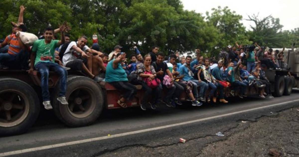 En un vídeo difundido en Twitter por Prensa Libre se observa a decenas de hondureños viajando en la parte trasera de rastras, camiones y vehículos tipo pick up.