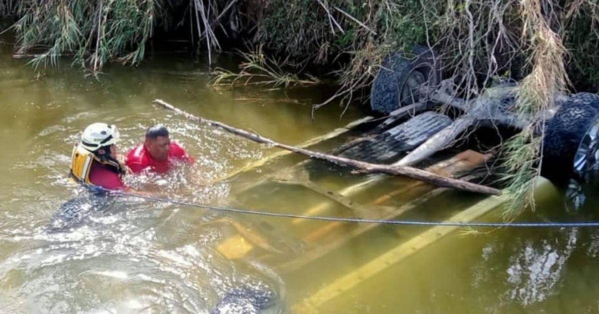 El automóvil fue encontrado con las llantas hacia arriba y totalmente sumergido en un arroyo en el que cayó tras internarse en una zona de difícil acceso, presuntamente, para evitar ser detenidos por autoridades migratorias.
