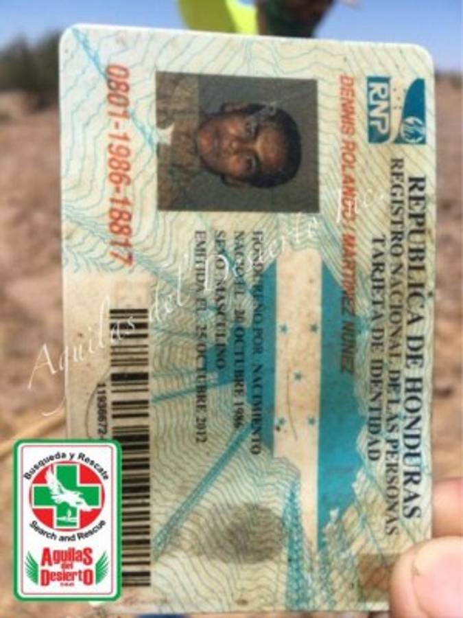 Se cree que los restos encontrados en el desierto de Arizona por los activistas de Águilas del desierto, pertenecen al hondureño Dennis Rolando Martínez Núñez (30)