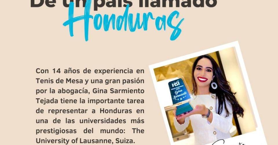 TEGUCIGALPA, HONDURAS.- Con 14 años de experiencia en Tenis de Mesa, más de 70 medallas en su haber y una gran pasión por la abogacía, Gina Paola Sarmiento Tejada tiene la importante tarea de representar a Honduras en una de las universidades más prestigiosas del mundo: The University of Lausanne, Suiza.