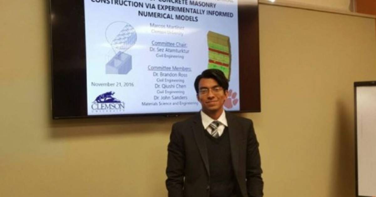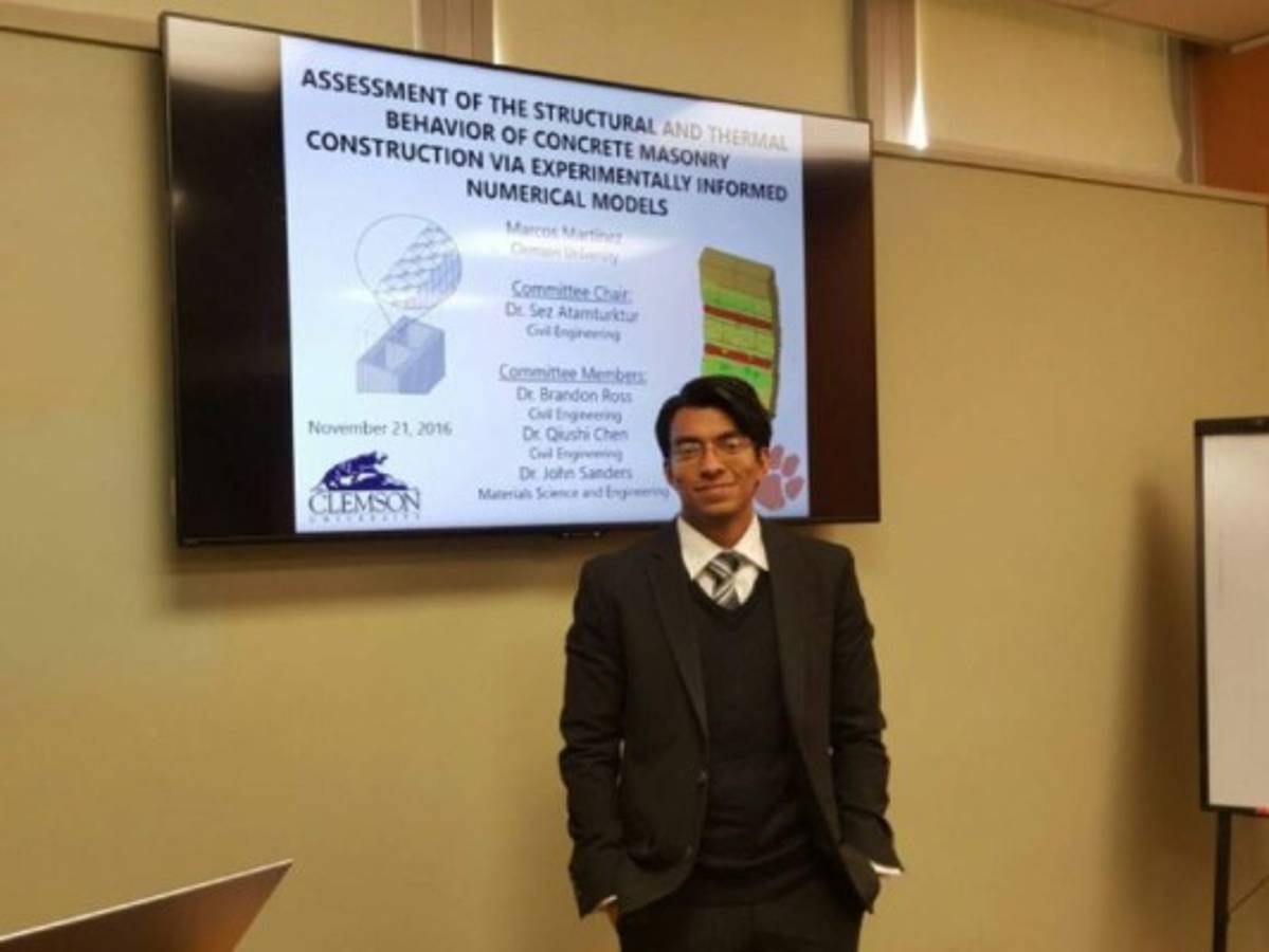 Marcos Javier Martínez es un connacional que destaca en Clemson University en Carolina del Sur, Estados Unidos, pues desde que comenzó a estudiar su Doctorado o Ph.D. en Ingenieria Estructural en el 2015 ha recibido cinco premios y oportunidades de estudio.