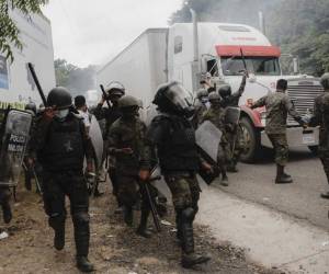 Ante su intento de continuar, los migrantes fueron repelidos con palos y bombas lacrimógenas de militares y policías. Muchos migrantes fueron lastimados en la refriega, donde los militares utilizaron largas varas para golpearlos e impedir que superaran la barrera.