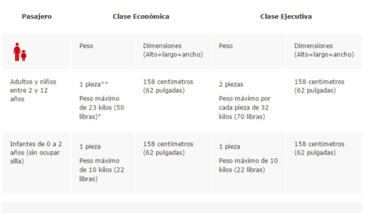 -En cuanto a las dimensiones del equipaje de mano este no debe exceder 22 x 14 x 9 pulgadas / 56 x 36 x 23 centímetros (incluyendo las manijas y ruedas).