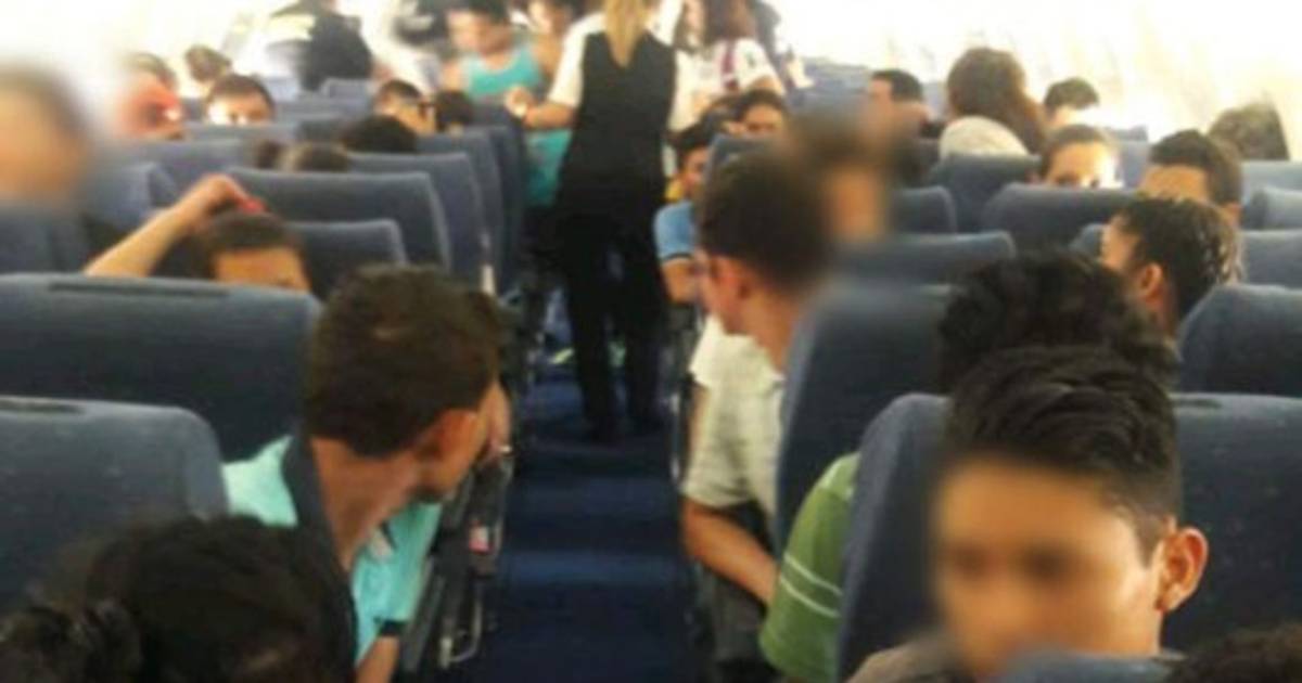 En la publicación también se adjuntaron dos fotografías: una del avión que transportó a los compatriotas y otra del interior de la aeronave con los catrachos a punto de ser retornados.