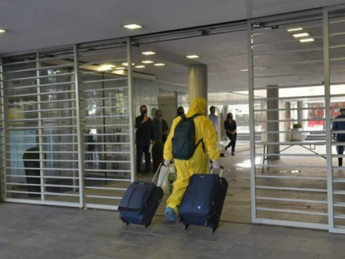 Aquí el momento en que arribaban al hotel uruguayo la semana pasada. Uno de los catrachos agradeció el apoyo que les ha brindado ese país sudamericano: