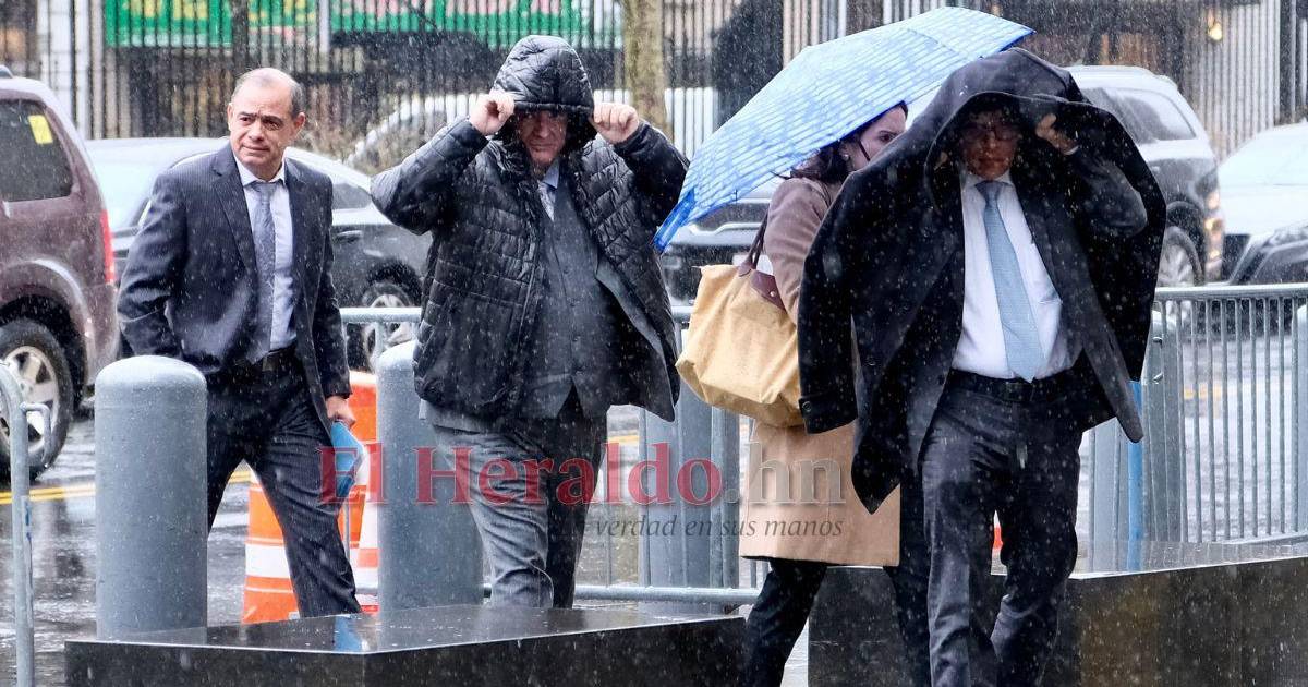 Cubriéndose de la lluvia, con el semblante firme y en silencio hicieron su ingreso a la Corte del Distrito Sur de Nueva York los generales Tulio Armando Romero Palacios y Willy Joel Oseguera Rodas, quienes servirán de testigos de la defensa del expresidente de la República (2014-2018 y 2018-2022) Juan Orlando Hernández. A continuación los detalles.