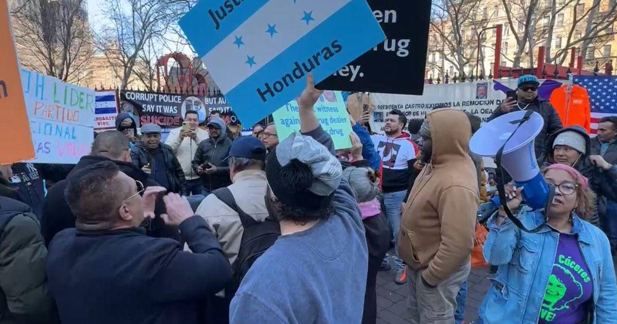 El grupo de hondureños se colocaba en las afueras de la Corte del Distrito Sur de Nueva York a lo largo de las tres semanas de juicio donde con pancartas exigían justicia por muertes emblemáticas como el asesinato de la ambientalista Berta Cáceres o la estudiante de enfermería, Keyla Martínez.