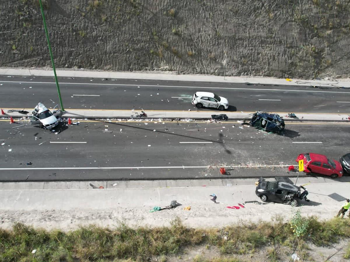 Al menos 22 automóviles terminaron destruidos o volcados en medio de vidrios rotos y pedazos de carrocería regados a lo largo de un tramo de la autopista Panamericana Norte que permanece cerrada tras el accidente, según la misma fuente.