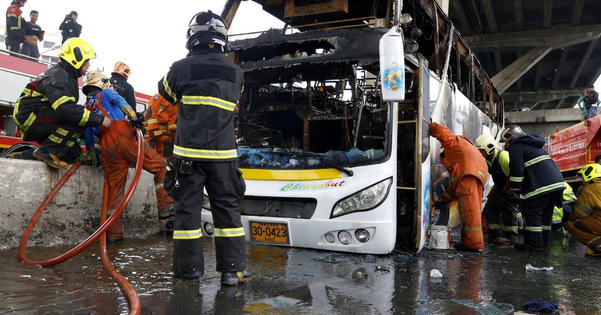 El autobús se incendió con los pasajeros dentro poco después del mediodía en la autovía Vibhavadi Rangsit, que atraviesa Bangkok, indicó Thai PBS.