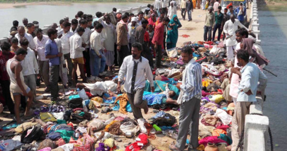 Al menos 91 personas murieron en una estampida ocurrida este domingo en un puente frente a un templo en el centro de India, anunció la policía.