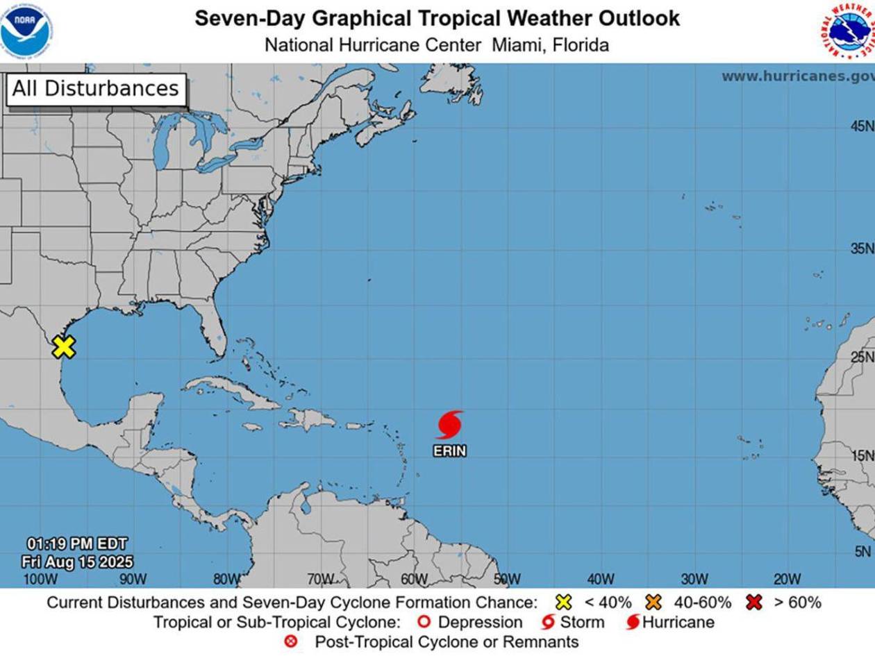 El NHC advirtió además que el oleaje generado por Erin afectará durante el fin de semana a las Antillas Menores, las Islas Vírgenes, Puerto Rico, La Española y Turcas y Caicos.