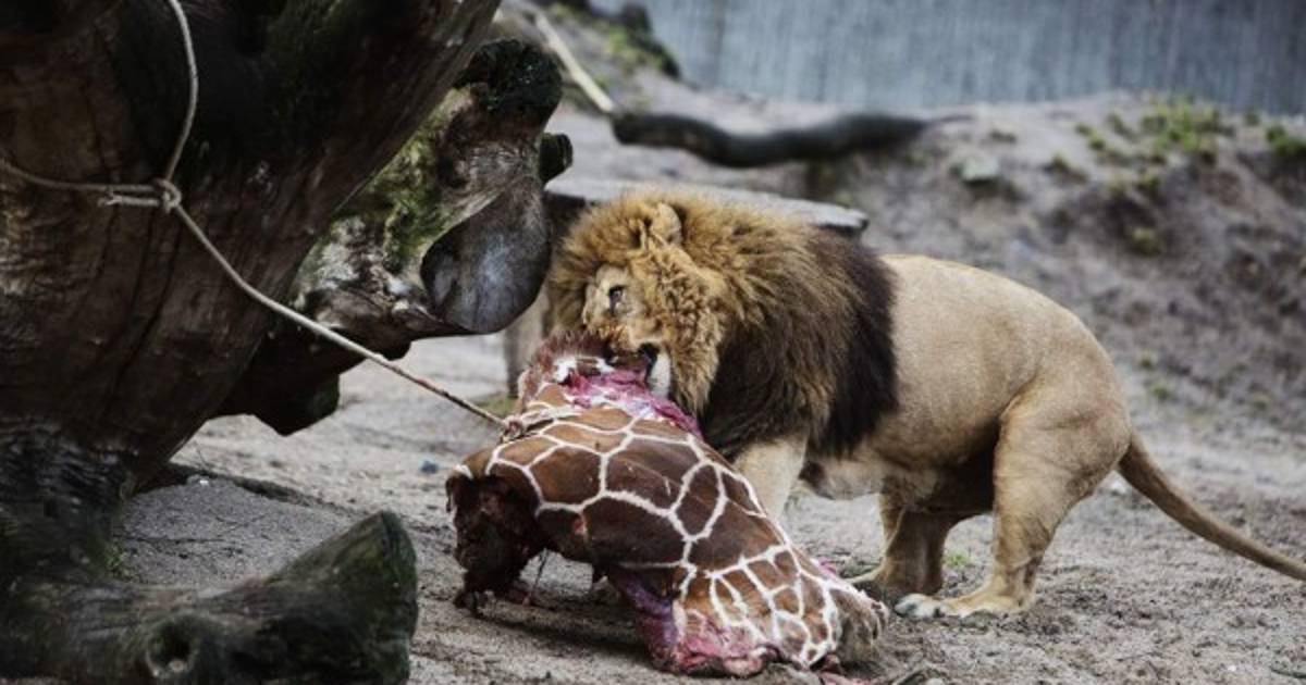 La jirafa Marius, un macho, fue sacrificada con una pistola neumática. Algunos visitantes, entre ellos niños, fueron invitados a ver mientras la jirafa era destazada y su carne arrojada a los leones.