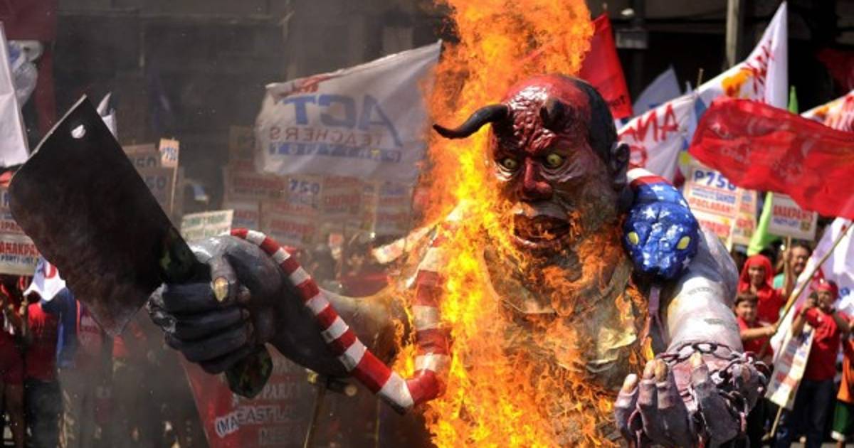 FILIPINAS. Los manifestantes quemaron un muñeco durante la celebración del Día del Trabajador en las calles de Manila, la capital del país del sudeste asiático.