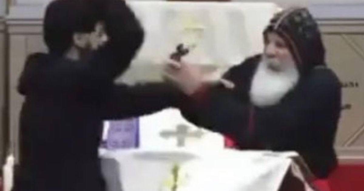 En las imágenes se ve a un hombre acercándose al altar, con un cuchillo en alto, y luego atacando al párroco, desatando el pánico entre los feligreses.