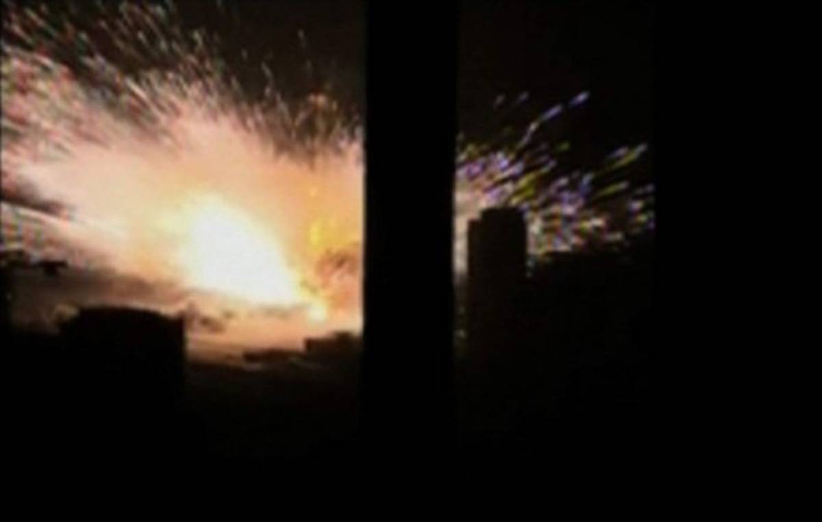 Las fotografías, aparentemente tomadas por personas cerca de la escena y que circulan en microblogs, muestran una enorme bola de fuego en lo alto del cielo, con una nube en forma de hongo.