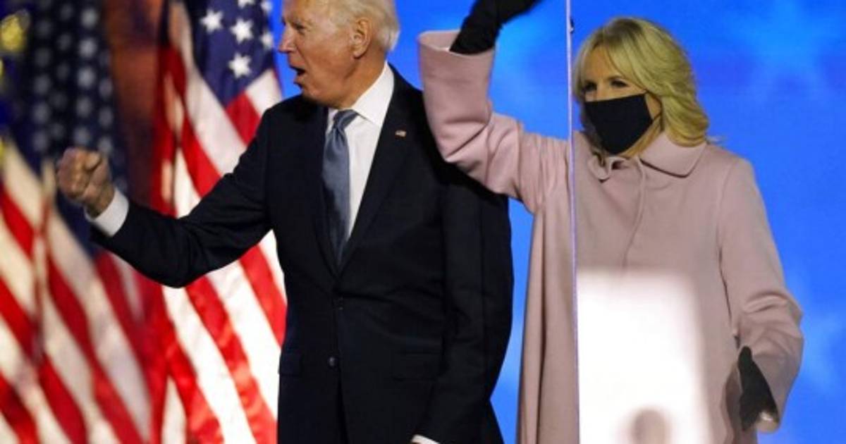 Acompañado de su esposa, Biden llegó hasta su sede en Wilmington, Delaware, para dirigir un breve discurso a sus seguidores que se han agrupado a la espera de la declaratoria de quien es el nuevo presidente de los Estados Unidos.