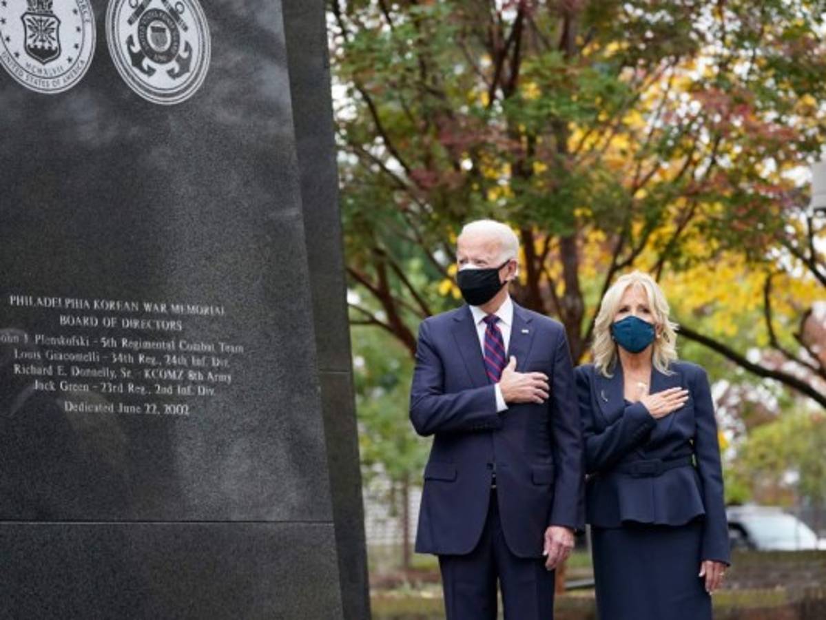Biden interrumpió su planificación a puertas cerradas solo para rendir homenaje a los soldados caídos en guerras al asistir a una ceremonia en el monumento a la Guerra de Corea en Filadelfia. El presidente electo, cuyo difunto hijo Beau revistó en la Guardia Nacional en Delaware, no hizo declaraciones durante la ceremonia.