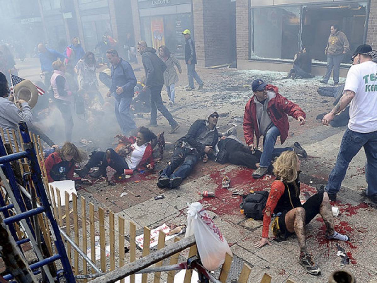 Las violentas explosiones ocurrieron con diferencia de unos 10 segundos y espacio de unos 100 metros entre sí, derribaron a espectadores y al menos a uno de los corredores, destrozaron ventanas y enviaron columnas de humo sobre la calle.