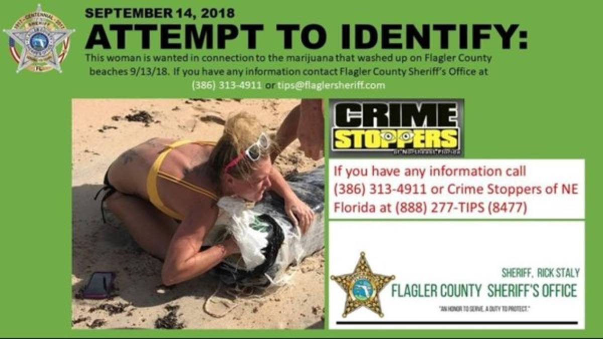 condado de Flagler busca a una mujer rubia que se aferró a un gran paquete de marihuana que salió a flote durante las inundaciones del
