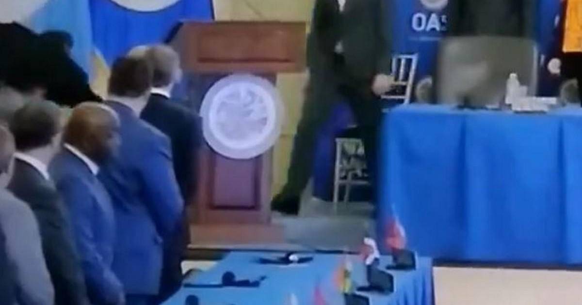 Luego de lo ocurrido, el gobernante tomó su lugar y se continuó con la agenda, que incluyó las palabras de bienvenida por parte del presidente del Consejo y una exposición de Almagro, en la que destacó los intentos de la fiscalía guatemalteca para dejar sin efecto los resultados electorales.